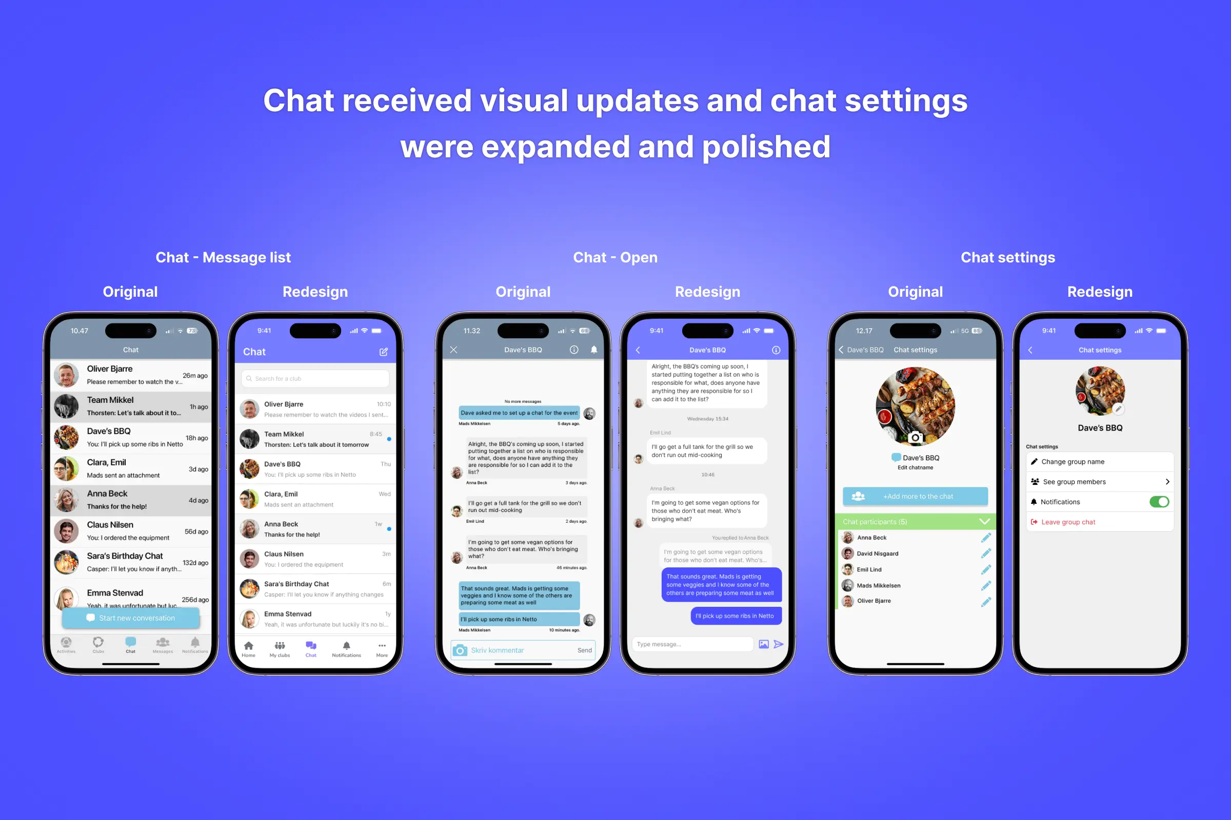 The chat feature received a visual refresh to create a cleaner, more polished messaging experience. Beyond UI improvements, the redesign introduces threaded replies, enabling users to respond directly to specific messages for clearer conversations. Chat settings were also expanded to support essential management tasks, including leaving group chats, updating chat details, and managing participants more easily. These enhancements make communication more intuitive and give users greater control over their conversations.