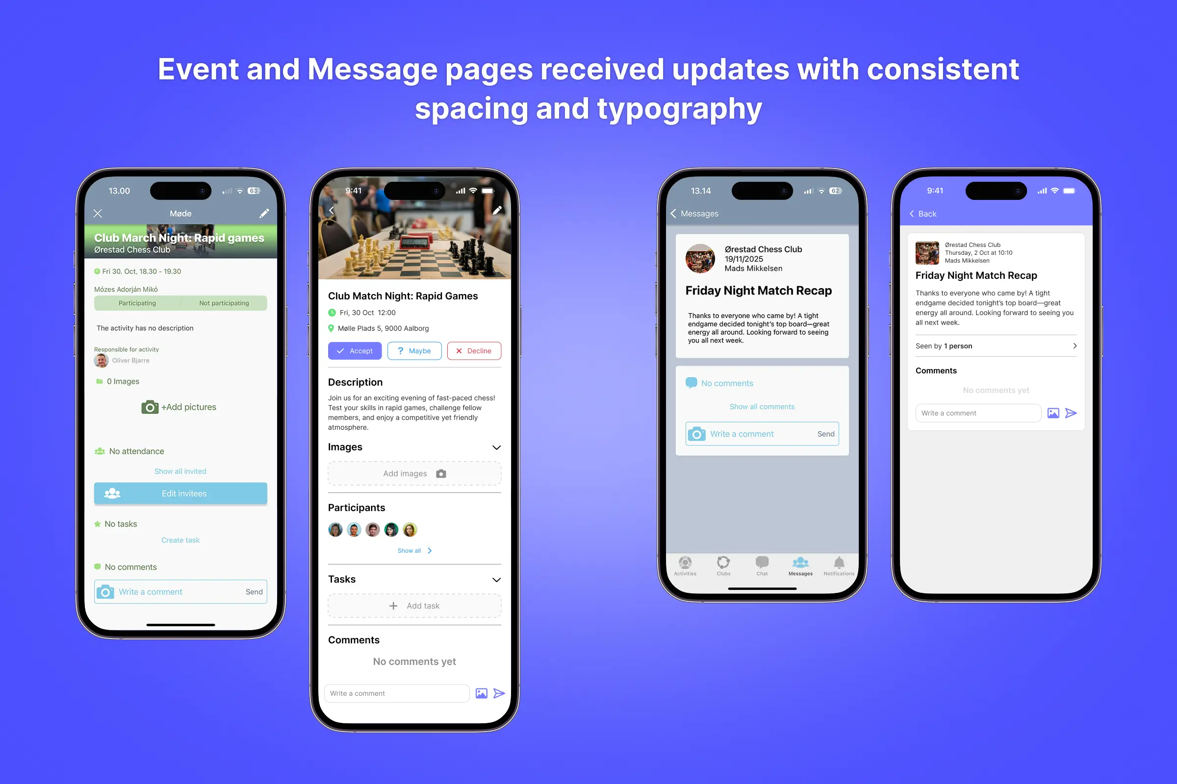 I applied consistent spacing, typography, and styling across event and message pages to create a cohesive and polished user experience. These improvements help users navigate content intuitively and reduce visual distractions.